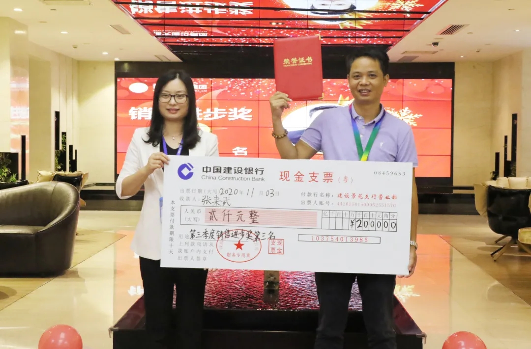 大會還頒發(fā)了第三季度銷售進步獎前三名及銷售冠軍。成績的背后是博大的狼性團隊和每一個充滿激情、奮力拼搏的博大人,博大對先進者給予充分的認可和獎勵,對他們優(yōu)秀成果予以及時的回報。