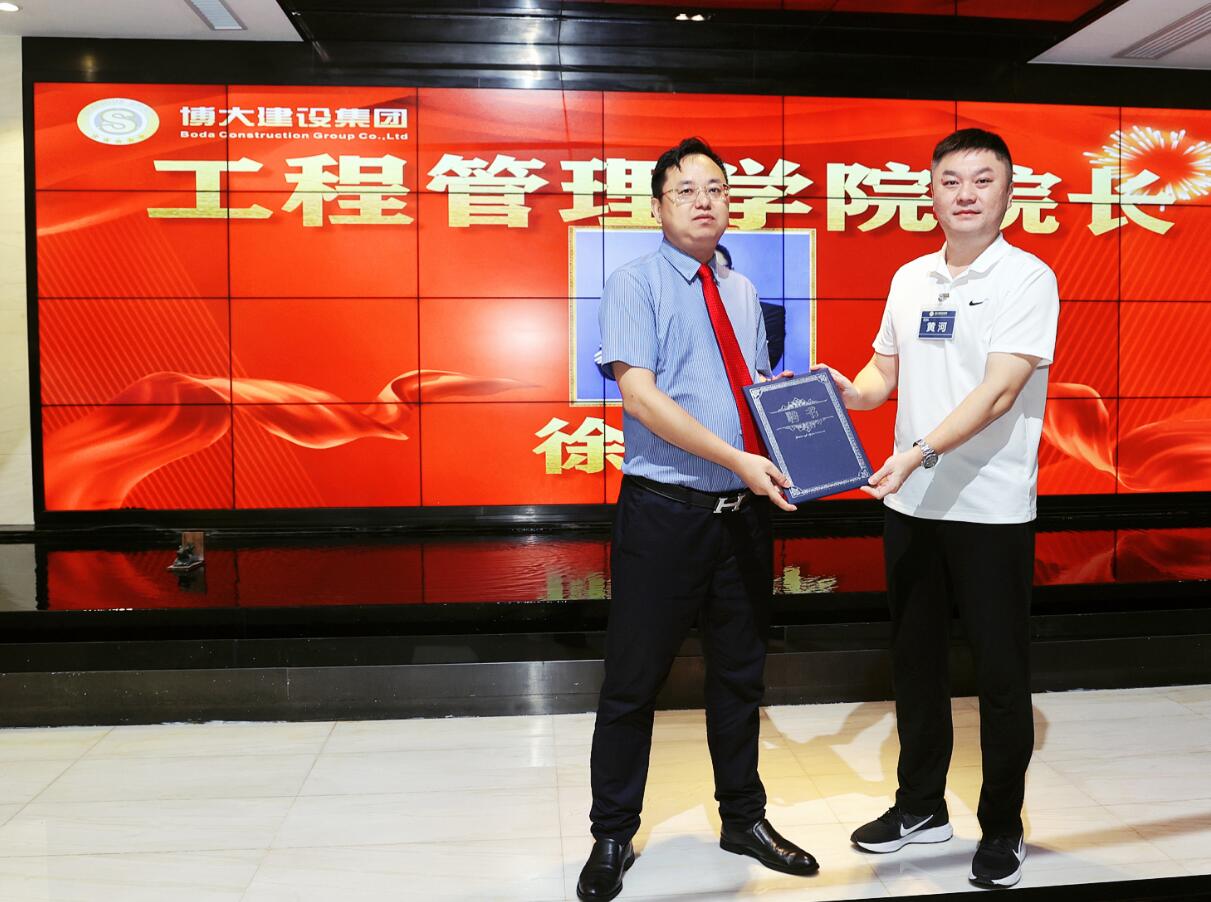14日上午,培訓正式開始前,博大鐵軍大學隆重舉行工程管理學院、研發技術學院兩個院長的任命儀式。任命集團高級副總裁、裝飾機電中心總經理徐朝華為工程管理學院院長,任命幕墻中心總工程師李立強為研發技術學院院長。